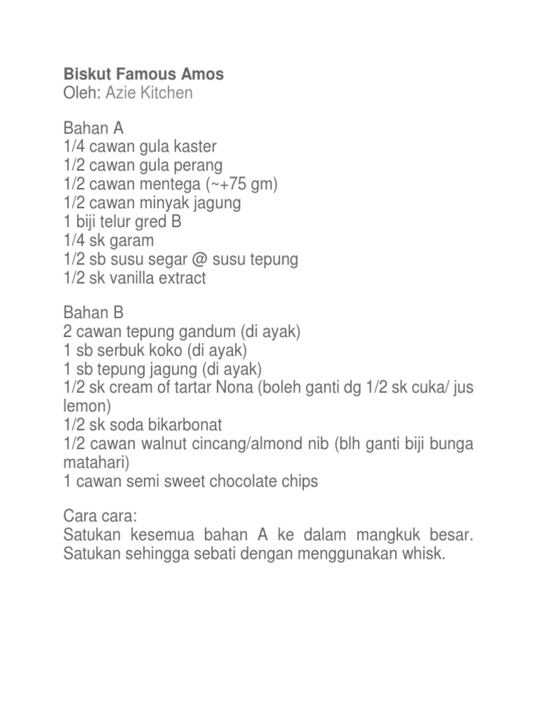 Biskut Famous Amos Oleh Azie Kitchen Resepi Masakan Bonda Tersayang Facebook