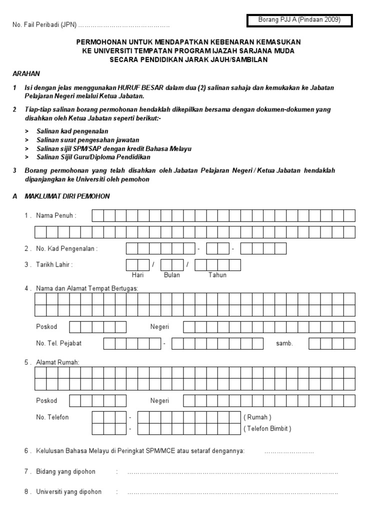 Borang Sambung Belajar