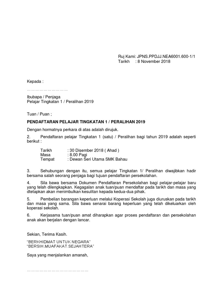 Surat Rasmi Saya Yang Menjalankan Amanah