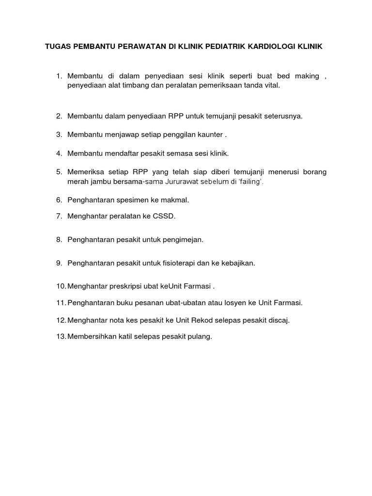 Tugas Pembantu Perawatan Di Klinik Pediatrik Kardiologi Klinik