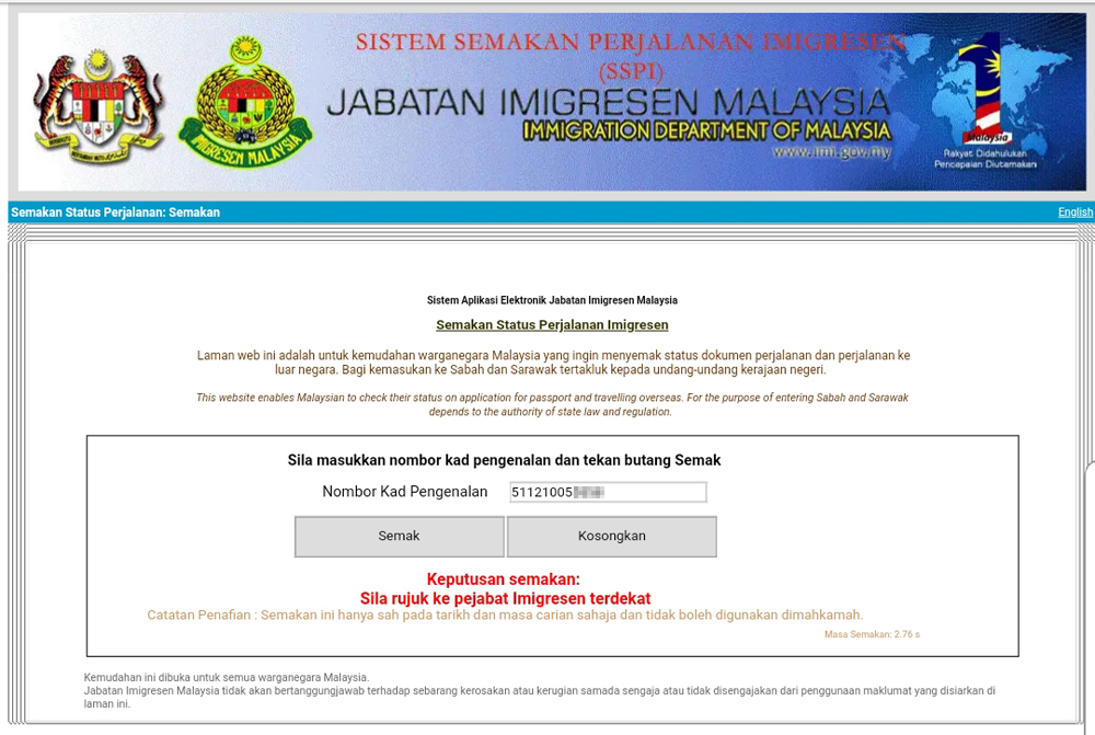 Sila Rujuk Ke Pejabat Imigresen Terdekat Status Sah Pada Waktu Dan Tarikh Semakan Dibuat
