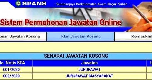 Jawatan Kosong Terkini Suruhanjaya Perkhidmatan Awam Negeri Sabah Spans Tahun 2020 Kerja Kosong Kerajaan Swasta