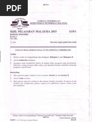 Kertas Sebenar 2015 Bahasa Inggeris 1119 1 Pdf Document
