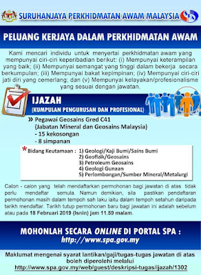 Jawatan Kosong Pegawai Geosains C41 2020 Spa