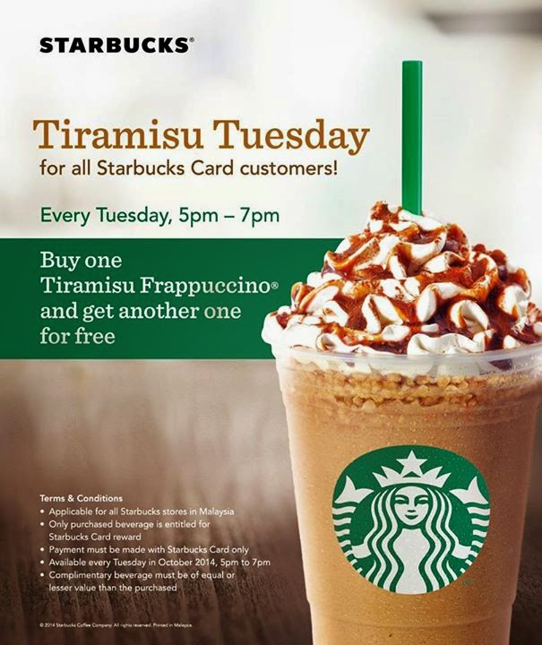 Discover Your Life Starbucks Enjoy Buy 1 Free 1 Tiramisu Tuesday Promotion