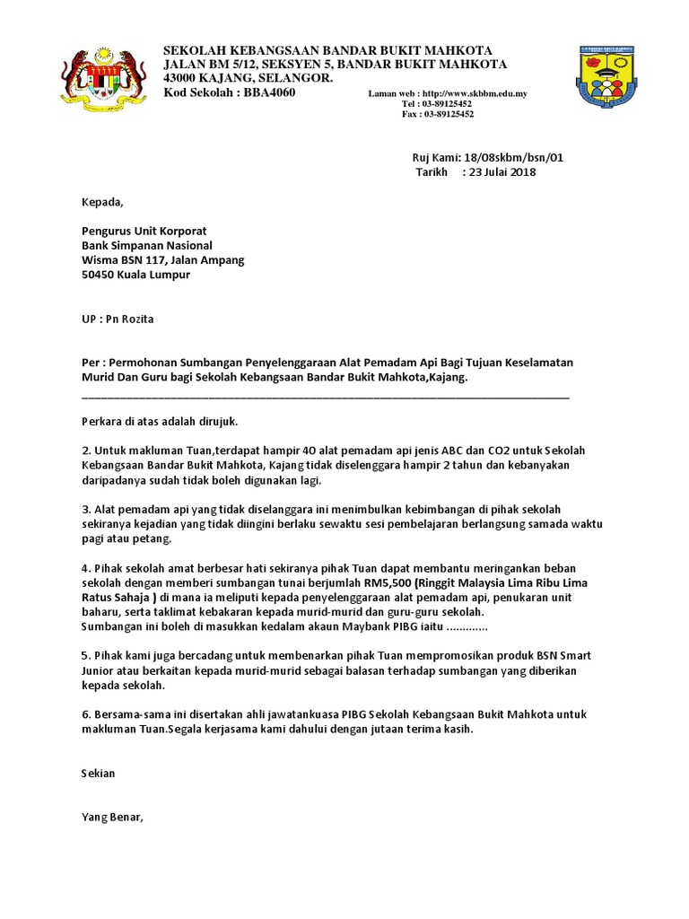Surat Alat Pemadam Api Sekolah Bukit Mahkota